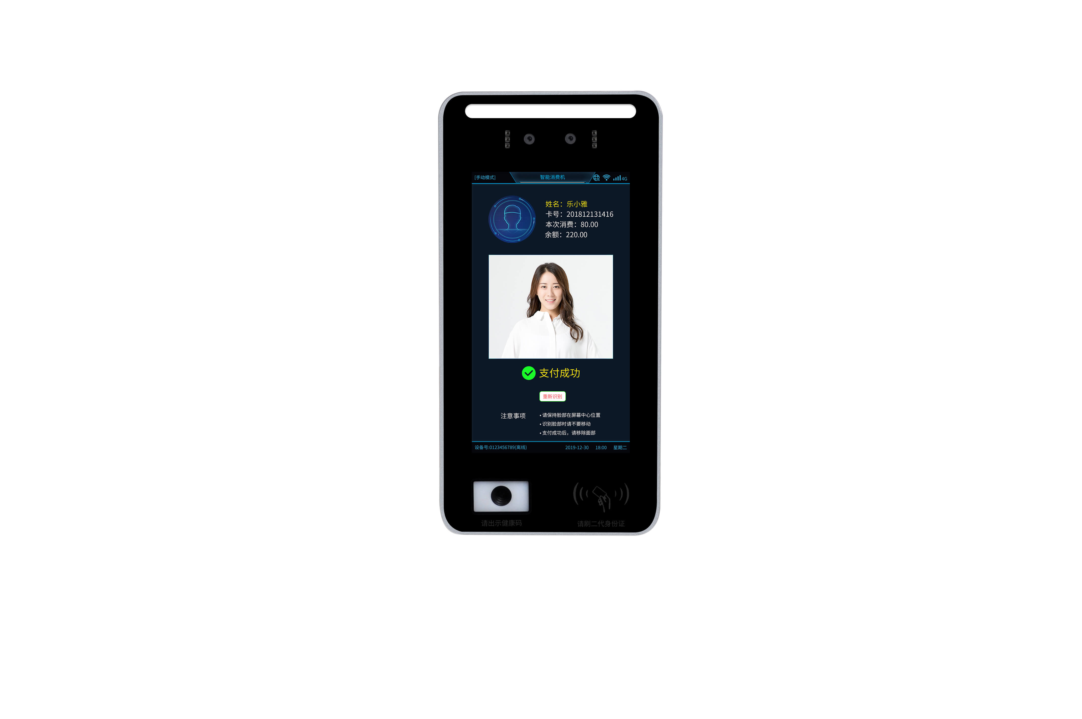 一、壁挂式双触摸人脸消费机终端的技术优势